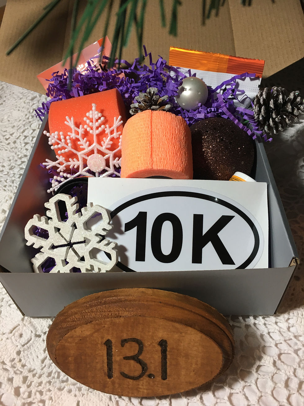 Select the box that best meets your needs. Each box will include Safety Gear, Running Accessories, a Personalized Product, Race Nutrition, Premium Snacks and Skincare / First Aid Needs.